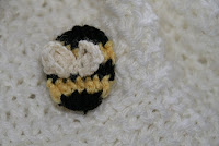 Sofie is very found of flowers, butterflies and everything remotely connected with summer. So when this hat was done, with only one colour, she decided that to like it, it needed some decorations.